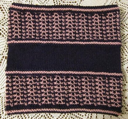 Whether you knit this worsted weight cowl in a solid mosaic or give it even more pizzazz with a stockinette stitch interlude, this cowl will knit up quickly. Three different lengths allow you to customize the fit for your specific needs. The back side gives a fun, tweedy appearance.