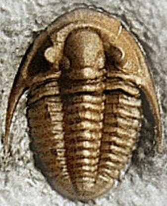 Cryptolithus fittsi is the last one found in Ordovician rocks in Oklahoma, USA. Around the front edge of the cephalon is a frill used by the animal to disturb sediment while feeding that is represented by some lace knitting.