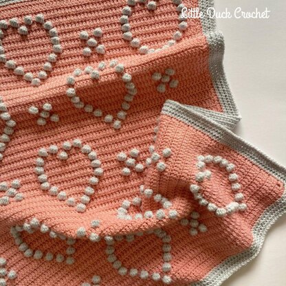 A beautiful blanket full of love! My A Whole Bobble Love blanket features beautiful bobbly hearts in a contrasting colour, perfect for making for a impending new arrival.