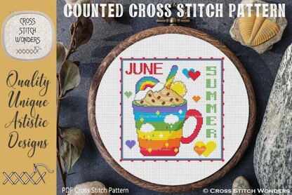 A wonderful monthly mug counted cross stitch design.\nCross Stitch Pattern Designed by Marcia Manning.\nStitch just the mug or the entire design. Either makes a wonderful project.\nConsider stitching on a matching wood blank too - how fun!\n92 stitches wide by 92 stitches high.\nPDF is a COLOR counted cross stitch chart which lists suggested DMC floss colors, and includes a color picture.\nStitched design size is as follows:\nSize 11 count: 8.36 x 8.36 inches or 21.24 x 21.24 cm\nSize 14 count: 6.57 x 6.57 inches or 16.69 x 16.69 cm\nSize 16 count: 5.75 x 5.75 inches or 14.61 x 14.61 cm\nSize 18 count: 5.11 x 5.11 inches or 12.98 x 12.98 cm