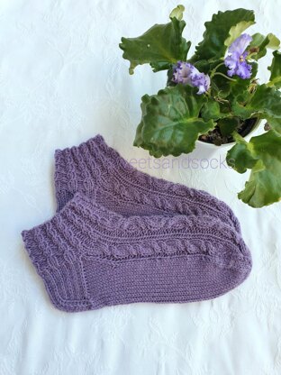 Aamuyö - aikuisen lyhytvartiset palmikkosukat ovat näyttävät palmikkosukat, ja lyhytvartisuuden ansiosta myös nopeat neuloa. Palmikot eivät ole vaikeita, mutta palmikon kiertoja on jonkin verran. Palmikot ovat toistuvia ja ohjeessa on kuvallinen kaavio.