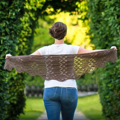 Like antiquated ruins in a forested glen, Abbey Glade has architectural pillars interspersed with leaves and vines in its gently curving center section. The scalloped border has individual leaves framed with columns like stained glass windows overrun with foliage and a bit of sparkle for the remnants of glass.