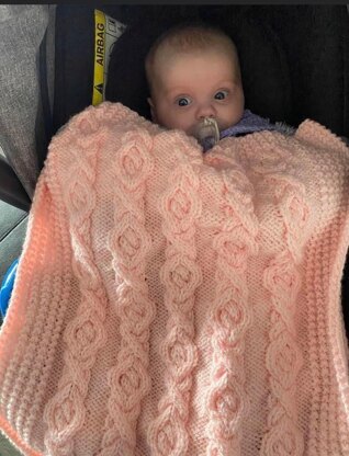 This blanket has been designed for babies but the length can easily be extended and more cabel panels can be added to increase width. It comes in three (3) sizes to fit Car Seat, Pram and Cot. Approx measurements are given below. It also includes a matching hat in 0-3m and 3-6m. I designed this in memory of one of my teams fathers who passed away. This blanket will match perfectly with the LAYLAH cardigan to make up a beautiful set. Knitted on straight needles. Bootees and mittens are available as a free download on my website. This is a pdf pattern which etsy will send to your email immediately on completion of purchase/