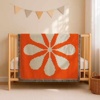 Abstract Flower Orange Blanket Botanical Home Decor C2C Crochet PATTERN