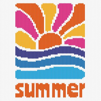 Capture the beauty of a retro summer sunset over the ocean with this vibrant knitting chart! Featuring a warm gradient sun sinking into the water, this design is perfect for cozy sweaters, blankets, tote bags, pillows, and home décor. Whether you're inspired by 80s aesthetics, tropical beaches, or vintage sunsets, this pattern brings a touch of nostalgia to your knitting projects. Designed for both hand-knitting and machine knitting, this chart works seamlessly with Intarsia, Duplicate Stitch, and Fair Isle techniques.