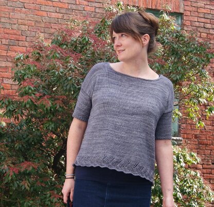 Acanthus is an over sized tee with lace trim along the bottom of the front and lace up the back. It is worked from the bottom up with picked up sleeves, the only seaming is at the shoulders. Great for the Spring weather that has finally arrived here in Maine and for the soon to be air conditioned offices:)