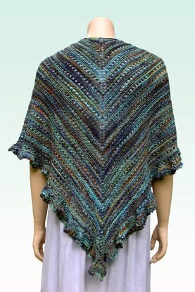 Nothing could be more satisfying and peaceful than knitting this lovely shawl. Rather than being shaped as a regular triangle, which tends to fall off of the shoulders, the unique shaping of this shawl rounds the neck and shoulders so it stays put. Pretty ruffled edging and dainty picot trim make it soft and feminine.