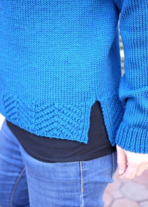 ADELAIDE is a top-down seamless raglan sweater featuring chevron panels and a high-low split hem.