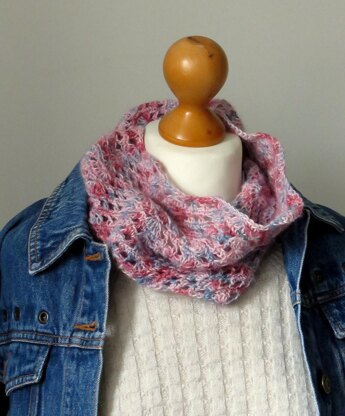 This cowl is crocheted in rounds to make a seamless accessory. With easy stitches and only one round to memorise it is suitable for beginners who have mastered basic stitches. Ripple stitches have a lovely rhythm and are perfect for self-striping or variegated yarns. The result is an elegant cowl that is designed to fit snugly around the neck to keep out the chill. The Alpaca yarn used for the short sample has a soft, fluffy haze and beautiful drape, the subtle variegations in colour help to create a feminine cowl that is easy and flattering to wear. The longer, “wrap around” version uses a 4 ply merino yarn from Eden Cottage Yarns, the repeating pattern really shows off the subtle variations of green.