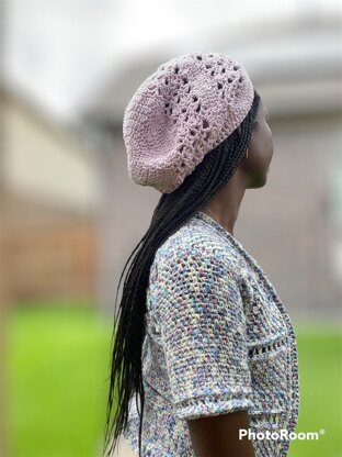 ABOUT: This fun and attractive Adorn Me Slouch Beanie is made with a familiar stitch and two-row repeat which works up quickly. It is worked in the round from the top down using DK or worsted weight yarn. The open, lacy pattern adds flair and makes it wearable year-round.