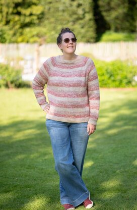 Experience the joy of creating your own fashion with the Adriana Sweater pattern. This easy top-down raglan pattern is a symphony of stripes and coziness, perfect for those crisp fall days. The mohair yarn and DK weight yarn held together create a soft, plush texture that you'll love to show off.