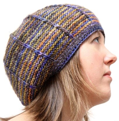 A slouchy, garter stitch hat in an easy, two-colour stripe and slip-stitch pattern.