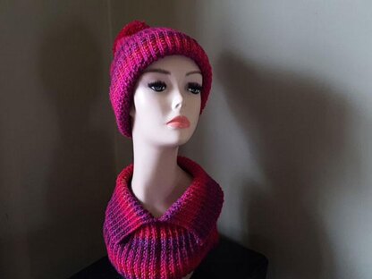 Intermediate knitter, but if you are comfortable with standard knit & pearl stitches, ssk and k2tog, this is a great project for a beginner wanting to try something new. Full instructions are given and both beanie and snood have one seam only (pompom is optional and no instructions are given in the pattern - but plenty on the internet!).