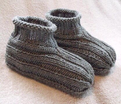 Using basic stitches and common techniques, the final product makes a comfortable slipper with a longer cuff ensuring that they will stay snuggly on your feet. There is now a companion how-to video available on YouTube entitled How to Knit Adult Bootie Slippers. This video shows how to make the entire slipper from casting on to sewing up the seams.