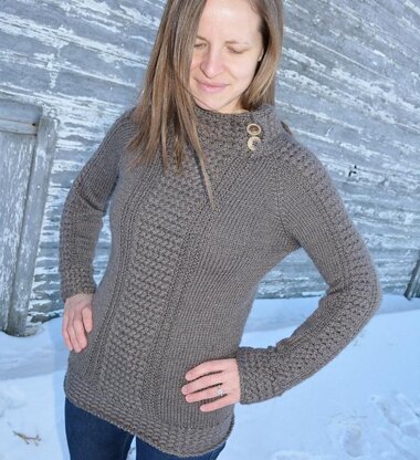 This sweater is knit from the top down, raglan style and is completely seamless! It starts with the collar knit flat. The bottom of the sweater is knit by picking up stitches along the collar. It features a fun cable pattern down the front of the sweater as well as the sleeves.