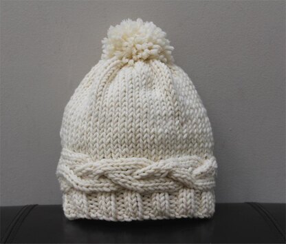 Tis the season! This is warm, easy to wear and a fun quick knit on a #11 needle with a bulky weight yarn. This hat fits an average adult head (approx. 21")Gauge=3sts. per inch and it looks great in every color.