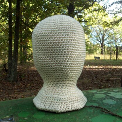 Display your hand made hats in style with this adult sized mannequin head. Worked in a spiral, and entirely in single crochet, it’s a straightforward project with just a bit of hand sewing to attach the base to the head.