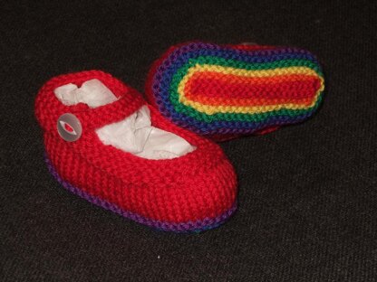 This is a 7 page electronic (PDF) pattern for beautiful mary jane style baby booties, knitted with or without a stunning rainbow sole. Instructions are given for 3 sizes: foot lengths 9, 11 and 13cm long (approx newborn - 12 months) with directions of how to tweak the width, depth and ankle circumference to fit, and ideas of how to change the texture of the shoe.