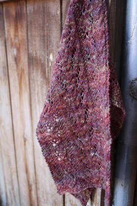 Aequus Nox is a fingering weight cabled and lace scarf. Its light weight will carry you from the crisp Autumn wind into the fresh, breezy Spring.