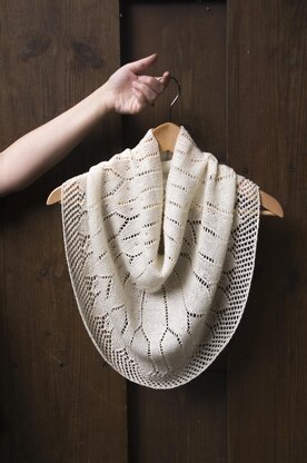 Aerate is a light-as-air lace cowl whose clever, three-dimensional shaping gives the look of a perfectly draped shawl without the fuss of arranging and rearranging loose ends. This shaped cowl is worked in-the-round from the top-down, increasing outward radially for a larger circumference at the base. Short rows are worked intermittently to add dramatic height to the front of the cowl, giving it a distinctly asymmetrical shape that drapes beautifully.