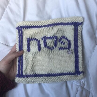 This is a one-size, knitted afikomen cover, knitted in one piece with light seaming and an added button and optional duplicate stitch pattern. The vertical stripes are done using a fancy laddering technique - it’s much easier than it looks! You have three options for the color work. Choosing to do without, choosing to do it with duplicate stitch, or using the ladder technique.
