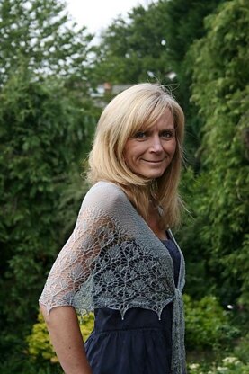 The crescent shape is achieved by a series of short rows and followed by wide lace border.