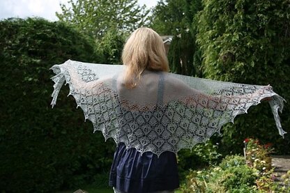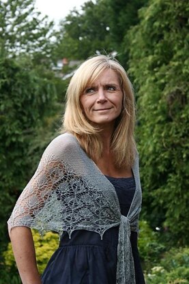 African Queen is a crescent shaped shawl knitted top-down in a fine bamboo lace.
