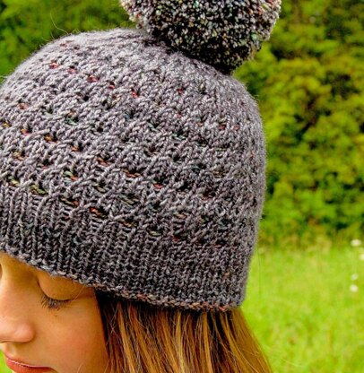 After the rain, the world is washed clean. Even in the muddy depths of a wet winter, pebbles shine with newly revealed colour, evergreen leaves gleam, and the clouds break to show the sky. This is a hat for hope and new beginnings.