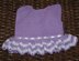 Supplies: Size 1 Steel Crochet Hook, Boye Size C Aluminum Crochet Hook, 350 yds. Royale Classic Crochet Thread (Wood Violet #495-V), 250 yds. Red Heart Classic Crochet Thread (White #201), 3-½" buttons, needle and thread, 25"- 3/16" White Satin Ribbon.