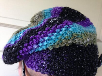 I'm calling this a recipe instead of a pattern, because there is no specified gauge and everything is adjustable. The hat starts with the band, which is knit to fit. Yarnover loops worked along the band elminiate the need to pick up stitches.