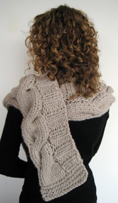 Who says that super bulky yarn can't also make graceful twists and turns? This oversized beauty features strategically placed short rows that bend the scarf to drape around your shoulders and stay there! The cables are mirrored about the halfway point of the scarf (at the back neck) and then the ribbing is picked up and worked in short rows to give the scarf its final hairpin shape, which lends a hint of curve to the scarf. And with US 13 needles, you'll be wrapping yourself in this modern take on the classic cabled scarf in no time!