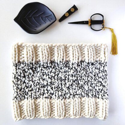 This cowl is a super quick project, you can finish it in less than two hours! With two skeins (Rasta and Caracol) you can knit two cowls or a cowl and a matching hat.
