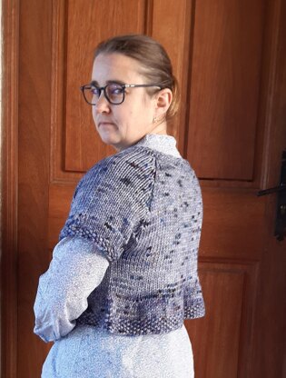 Aiguebrun is a short cardigan, or shrug, to be worn on a shirt ou a tee-shirt, to bring warmth and a bit of fancy.