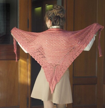 Materials: 2 skeins Swans Island Natural Colors Merino Silk, 50% Fine Merino Wool, 50% Tussah Silk; Lace weight (50 gms, 550 yds each) Color Shown: YL149 Guava