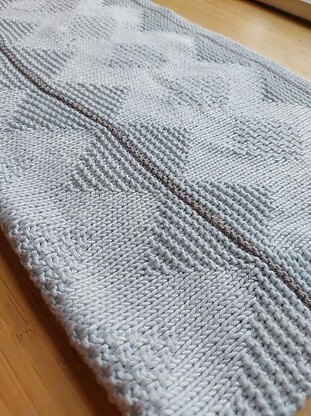 It is a simple textured triangle and diamond design that only uses K and P stitches.