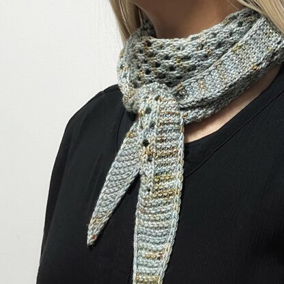 ‘Airy Breeze’ is a charming triangular neck scarf or shawlette with a lighthearted look. Knitted in stockinette with eyelet rows, a garter border, and neatly finished edges, this neck scarf is pretty on both sides and can be made with only a single skein.