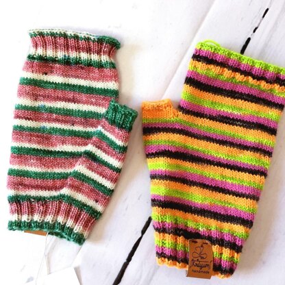 Otherwise simple fingerless mitts but with a character... Choose your favourite fingering weight yarn and go on the knitting journey of these mitts with a different kind of thumb gusset to provide an excellent fit.