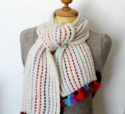 Alaska Scarf is lovely brioche scarf. Brioche stitch is one of my favorites, is double sided and very squishy and fluffy, great for cowls and scarf, will keep you cozy and comfortable. I have an easy method to make this stitch, you will love it! Colorful embroidery details and tassels ends make this scarf so unique and a great addition to your winter wardrobe.