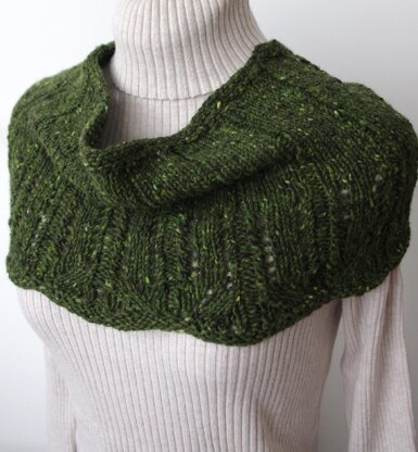 Alberni Cowl knits up quickly with only two balls of Aran weight yarn. The pattern is easy to remember and satisfying to work.