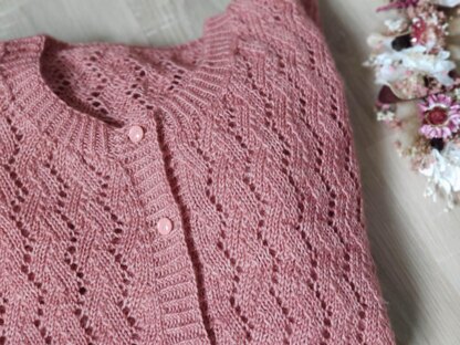 YarnThis cardigan is knit with a yarn of type fingering weight. (here Teinturlurée BFL col. Sweetest thing)