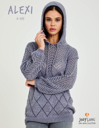 Alexi is an all over lace designed hooded sweater which can be knitted in any DK weight yarn.