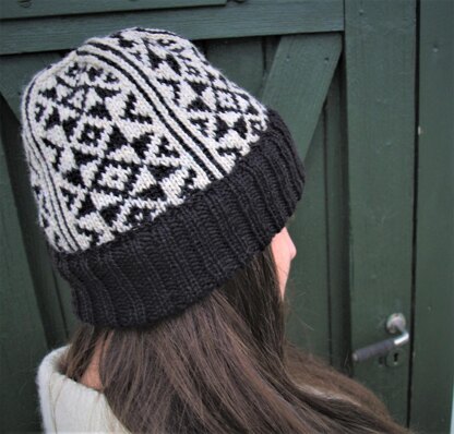Alfred hat with ribbed edge is a warm and cosy winter hat in same pattern as Nordavind mittens. Yarn used to knit the pictured hat is Sandnes Smart. Other wool yarn of same weight can also be used, ex. Cascade 200.