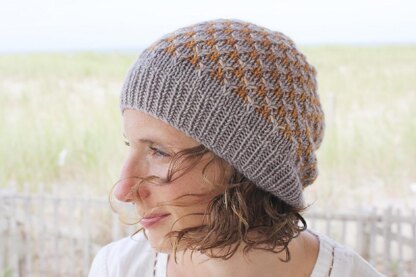 The Algonquin Hat is a simple beanie with just a touch of slouch. The combination of texture and color is striking, but easy. I've played with this detail to connect the ribbing to texture - you only see this on the blue hat since I added it into the pattern after finishing the gray one. (ahem) It's relaxing summer knitting.
