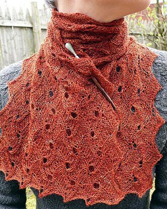 This sheer rectangle lace scarf features a pinwheeling arabesque motif of the kind found in Islamic art and architecture throughout Andalusia and southern Spain. Lace knitting on both sides of the fabric produces crisp lines and large eyelets, as well as pretty self-edging along hems and selvedges. If you use of a different yarn weight and/or needles your scarf will be a different size. The sample shown was knit in Dicentra Designs Alpaca Laceweight, shade Paprika.