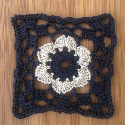 A pretty and versatile crochet square that can used to create a blanket, bag, bolero etc.