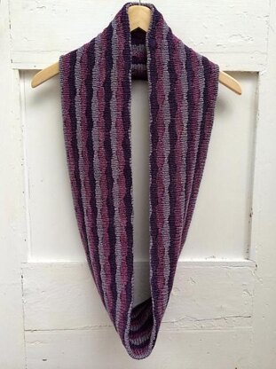 Puckers add textural interest to a colorful, drapey cowl worked in sport-weight yarn. Choose either a single layer or double layer version. The single layer cowl has garter edges, while the double layer version uses a provisional cast-on for joining the two edges (with a three needle bind-off or grafting), so there is no wrong side. This pattern is for the advanced beginner; the instructions are written and include a photo tutorial for making the puckered stitch.