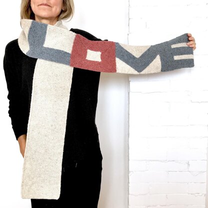 Love is love, and sometimes comes in the form of a squishy garter stitch scarf with a cool graphic motif!