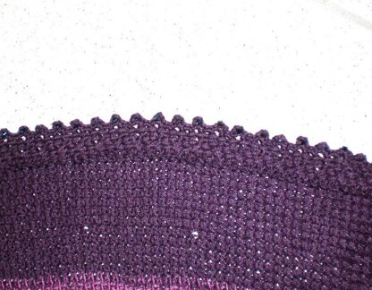 This halfcircle shawl is worked in Tunisian simple stitch with a small border. This lightly patterned border is worked sideways and attached to the main shawl as you go. Finally, a picot edge with beads is worked using regular crochet, weighing down the edge. With all these bordering features, it is possible to use a non-woolen yarn for this shawl – it will look great without blocking and the edges won’t curl!