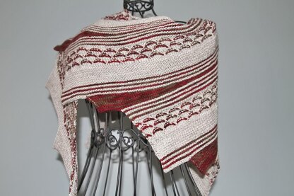 ALLIE - is an asymmetrical triangular shawl, knitted from side to side. This is another adjustable shawl, the size of which would be determined by knitter, just making as many sections as desired. This shawl was knitted out of beautiful Baah Platinum yarn (75% of Merino, 10% of Cashmere, 10% of silk, 5% of Stellina) and Malabrigo sock yarn as a contrasting color yarn. It could be substituted with any of your favorite yarns.