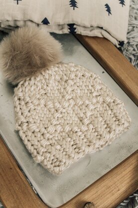 The diamond shapes and textures throughout give this beanie a complicated look, using simple knit and purl stitches. This is a quick knitting project perfect for watching the kids play at the park, short trips in the car; of course as a passenger, or to de-stash your hoard of super bulky yarn.